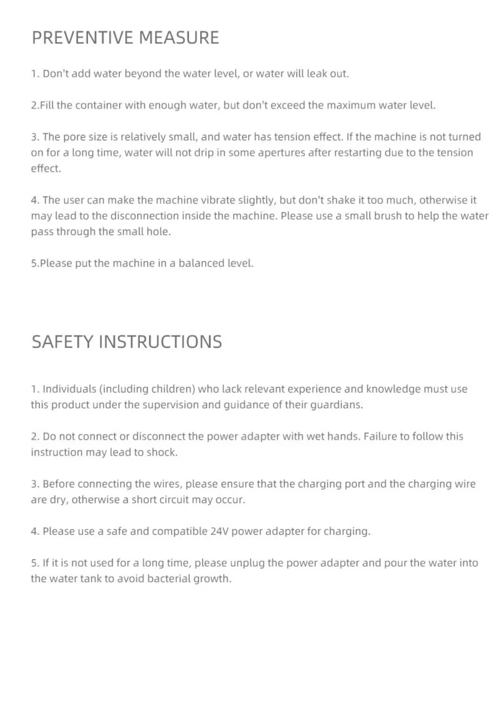 Water tank: 250ML